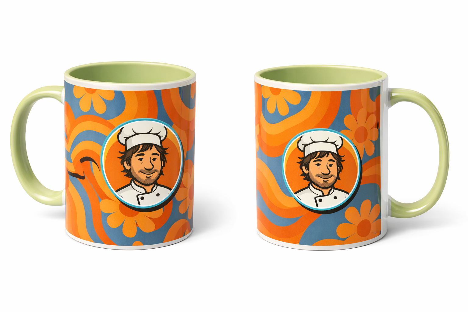 Diese Tasse ist wie ein kleiner Gruß aus der Kochvos-Küche. Warm, fröhlich, nah am Herzen. Für Kaffee, Tee und all die Momente, in denen du dir selbst etwas Gutes tun willst.